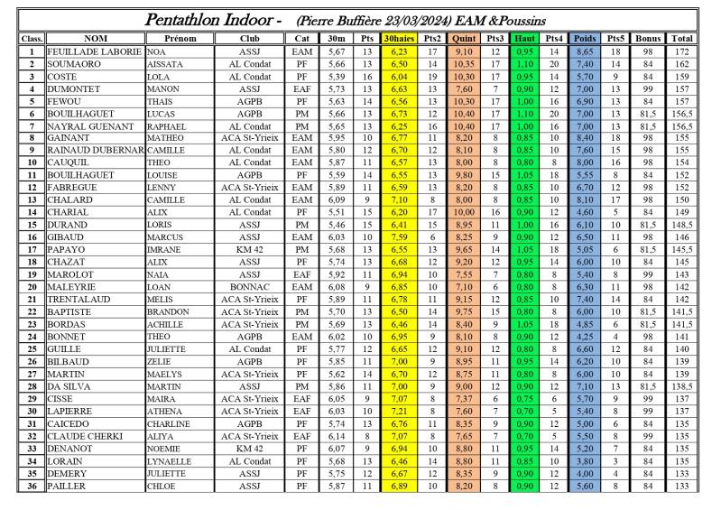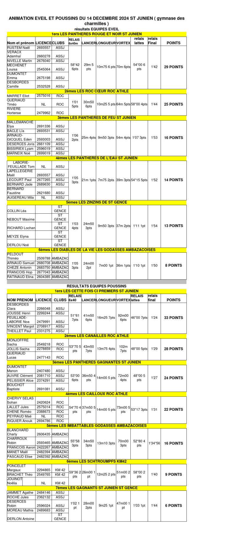 DUPONT Amandine (M1F/84) / 5000m:27'14", ROUSSEL Helene (M4F/70) / 10000m:48'41", LATOUR Aurelie (M2F/81) / 5000m:27'56",DUPUY Jean-francois (M4M/68) / 10000m:47'40", GIRY Jean-yves (M5M/64) / 5000m:22'49", VACHAT Jeanne (SEF/02) / 7195m:38'27"
